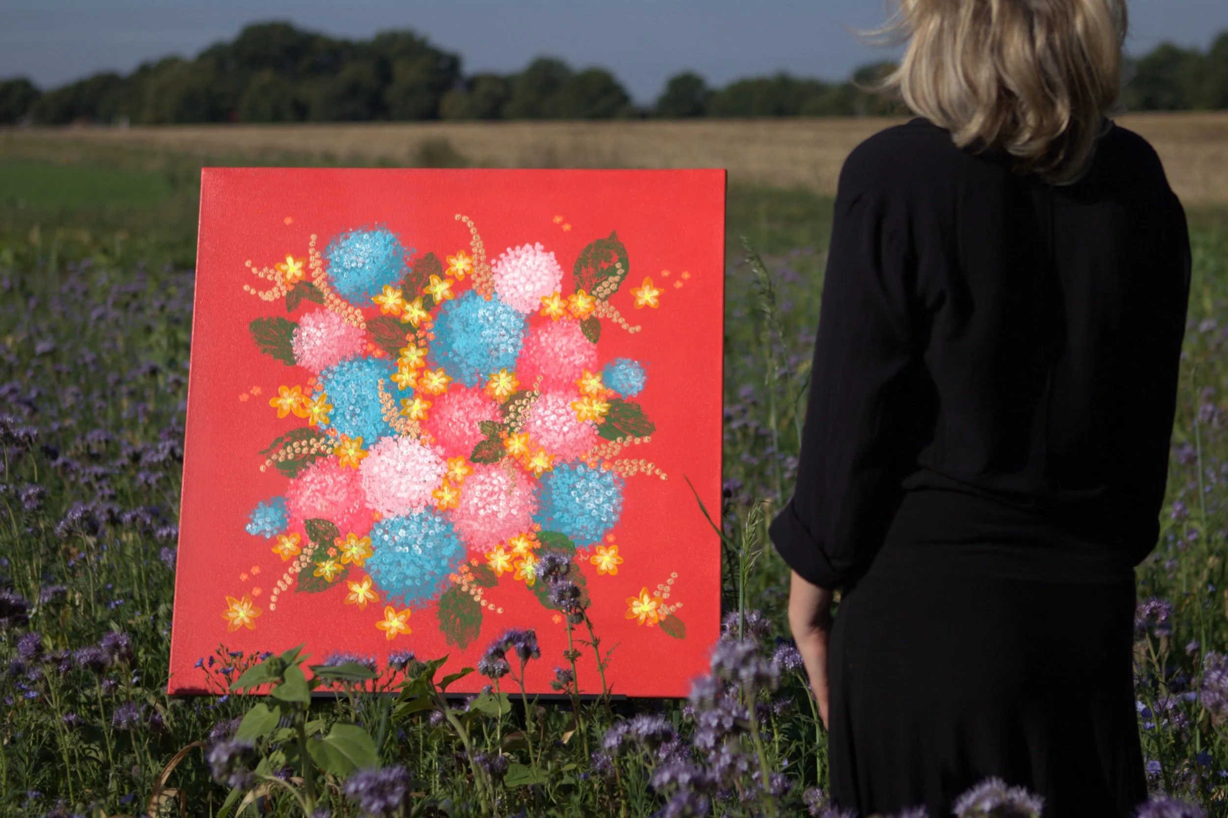 Ich male mit Acryl auf Leinwand und setze dabei genau das um, was mich auch früher schon fasziniert hat: die Vielfalt, Lebendigkeit und Leuchtkraft der Blütenwelt.