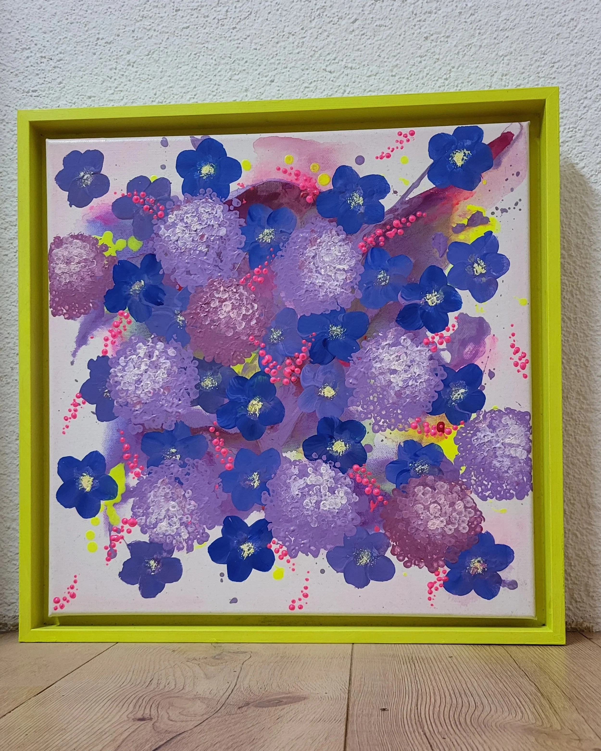 Knallige Neonfarben, kombiniert mit klassischen Farben und Schattenfugenrahmen in Neon.